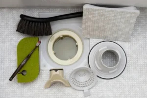 お風呂の排水口が詰まり、シャワーを使うと水が逆流してくるとのご相談でした。長年の髪の毛や石鹸カス、皮脂汚れが配管内で固着していたため、業務用の薬剤と高圧洗浄機を使用し、排水管の奥まで徹底的に洗浄・貫通させました。