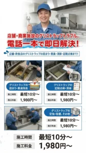 トイレや店舗(グリストラップ)の急な水トラブルでお困りですか?